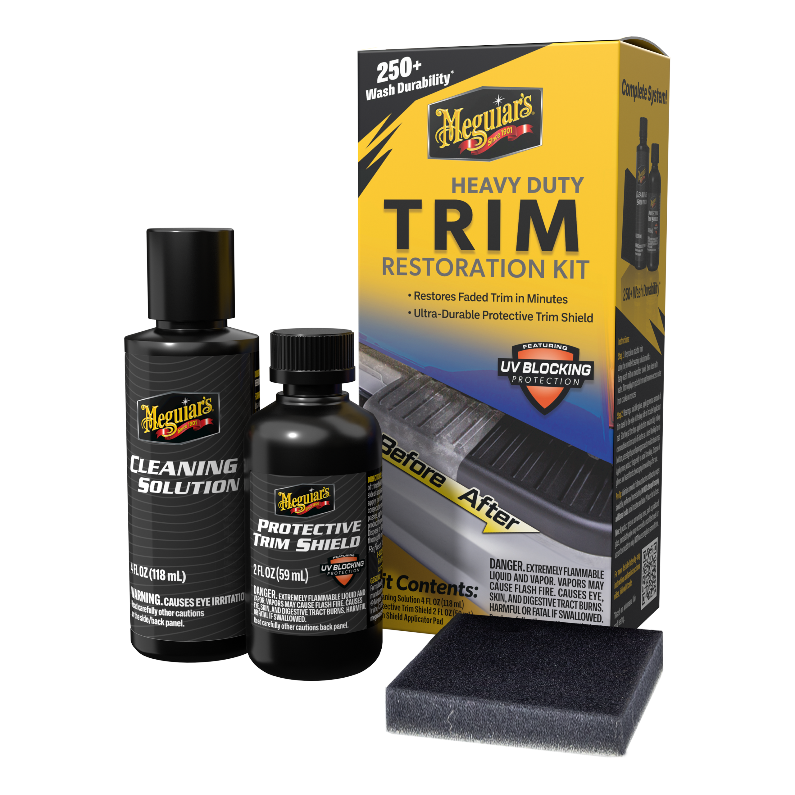 Med tiden kan plast- och vinyldetaljer på bilens exteriör blekna och förlora sin glans på grund av sol, väder och upprepade tvättar. Meguiar’s Heavy Duty Trim Restoration Kit återställer snabbt färg och djup lyster samtidigt som det ger ett långvarigt skydd. Den avancerade formulan fäster starkt på ytan och skapar en skyddande barriär som bevarar utseendet tvätt efter tvätt.