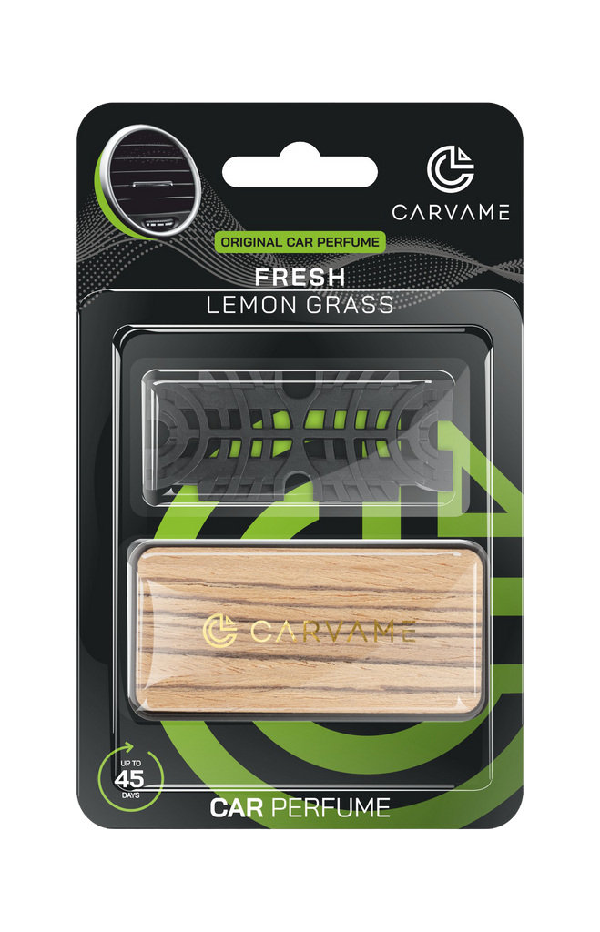 Beskrivning av Solid Classic Lemon Grass Få en fräsch doft i bilen med Air Freshener. Fäst den enkelt i fläktutblåset och njut av den behagliga doften i kupén