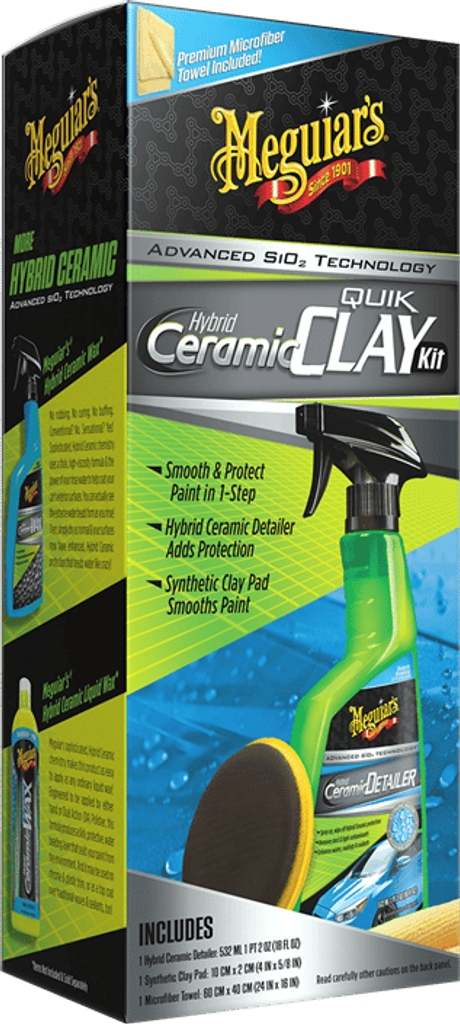 Få en blank och slät yta medan du rengör och skyddar lacken i ett enda steg. Hybrid Ceramic Detailer smörjer den syntetiska "lerkudden" och innehåller avancerat SiO2 Hybrid keramiskt skydd, vilket lämnar en hal, glänsande och extremt vattenavvisande yta.