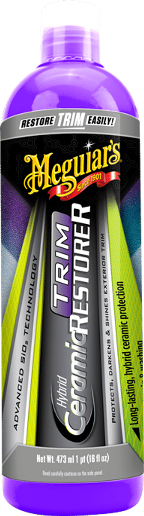 Meguiar’s Hybrid Ceramic Trim Restorer återställer snabbt färgen på grå och blekta plast- och gummidetaljer. Den avancerade keramiska formulan ger ett starkt, långvarigt skydd mot UV-strålning, vatten och smuts, samtidigt som ytan får en djup, mörk glans och ett fräscht, nytt utseende.