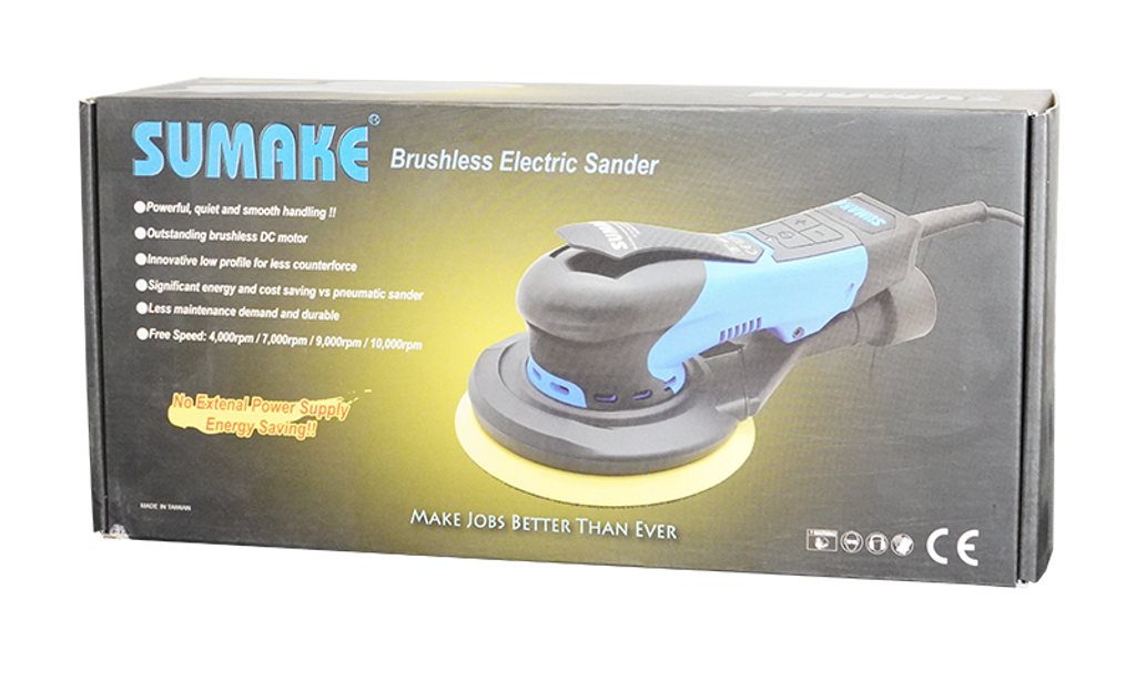 Nätdriven excenterroterande slipmaskin 150mm/ 5 mm excenterrörelse. Nätdriften gör maskinen energisnål och bidrar till en bättre arbetsmiljö genom sin låga ljudnivå och låga vibrationer. Maskinen är tillverkad i ett tåligt kompositmaterial och blir ej kall som en traditionell tryckluftsmaskin blir. Maskinen har fyra varvtalsinställningar för att optimera din slipning 4000/7000/9000/10000v/min. Varvtalet kan ändras även under drift. Maskinen återgår till högsta varvtalet när strömmen bryts.