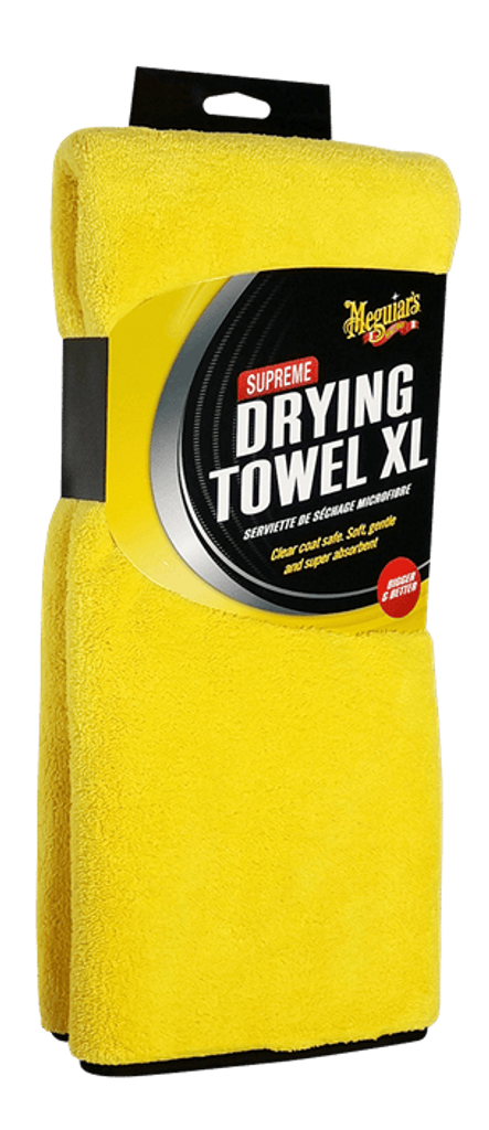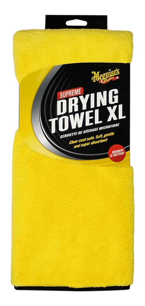 Meguiar's Supreme Drying Towel är en stor( 55x85cm) och ultramjuk torkduk med enastående uppsugningsförmåga. De specialsydda kanterna och den tjocka mikrofibern säkerställer ett fläckfritt resultat utan att riskera repor. Perfekt för en snabb och skonsam torkning av ditt fordon!