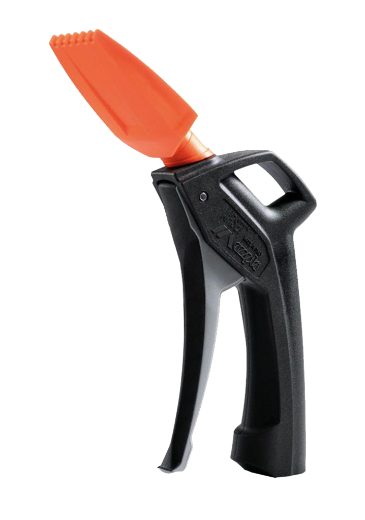 Beskrivning av Tryckluftpistol med platt munstycke Platt munstycke med flödesreglering.Anslutning: 1/4" invLuftflöde: 275 l/minRörlängd: 56 mm